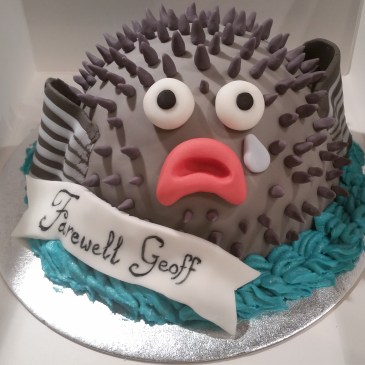 Here we have a sad little Pufferfish cake bidding farewell. Another cake that was totally different and fun to make 🙂