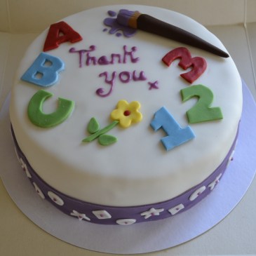 A great way to say thank you to your child’s nursery or school. This cake was finished by adding some of the many things that had been taught at nursery.